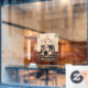 Tenga en cuenta que seleccioné la parte posterior de la pegatina para este anuncio de la puerta principal de la tienda de café personalizada con una puerta de vidrio tintado.