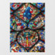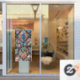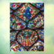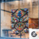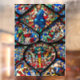 El arte de vidrio manchado está impreso en una lámina blanca de plástico, lo que hace que los colores parezcan muy dinámicos. Tenga en cuenta que la hoja blanca es opaca y oscurece el texto y el arte cuando se ve desde la parte posterior de la ventana.