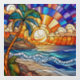 Vinilos Para Cristales Atardecer tropical en arte de cristal manchado en