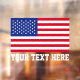 Calcomanía de ventana estática transparente de bandera estadounidense patriótica. Señales personalizadas para el hogar, tiendas, museos, negocios, oficina, lugar de trabajo, escuela, tienda, empresa, café, bar, pub, restaurante y otros lugares públicos interiores. Cree su propia señalización clara con texto moderno. No adhesivo. Se pega a la ventana. Señal de bienvenida para clientes, visitantes, etc. Impresión de cara hacia afuera o hacia adentro. Impreso en un lado.