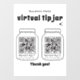 Este sellado virtual de punta personalizable es un producto versátil que le permite adaptar su propia experiencia de recopilación de consejos. Con la capacidad de insertar el nombre de su negocio y dos códigos QR de sus aplicaciones de pago preferidas, este signo mejora el compromiso del cliente y la facilidad de uso. Perfecto para cafés, artistas, intérpretes y proveedores de servicios, la barra de consejos se convierte en un centro de transacciones digitales sin fisuras, lo que permite a los clientes mostrar aprecio a través de pagos rápidos y convenientes. Eleva tu marca, simplifica las transacciones y fomenta un sentido de gratitud con este signo de tarro de punta de personalizable. Todos los estilos, colores y tamaños de texto se pueden modificar para adaptarlos a sus necesidades. Si necesitas ayuda o artículos a juego, por favor no dudes en contactarme.