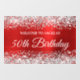 Crea tu propia celebración de cumpleaños de cumpleaños de bienvenida de la ventana de bienvenida para tu amigo o pariente. Personalizar la moderna y elegante caligrafía con un estilo moderno de todos los tipos de letra. El fondo presenta un falso purpurina plateado brillante en el borde superior con un gráfico metálico de arte digital oscuro de Relieve metalizado rojo metalizado y brillante. El purpurinoso, el brillo y el Relieve metalizado brillan como una foto.