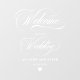 Simple blanco minimalista elegante guión caligráfico boda signo de bienvenida, póngalo sobre una superficie clara, vidrio, espejo...