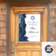 Elegante ágata azul marino y dorada decora el lado de esta moderna ventana de bienvenida Bar Mitzvah fiesta. El nombre de su hijo está escrito en un hermoso guión formal bajo la Estrella de David. Perfecto para una moda, elegante familia judía celebrando que su hijo fuera llamado a la Torá.