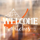 Este divertido adhesivo de ventana de Halloween cuenta con la imagen de texto "Bienvenidas Brujas", telaraña y una escoba de bruja. Todos los colores son editables. Perfecto para la temporada de fiestas.