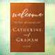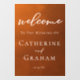 Siga la tendencia otoñal de tonos tierra con nuestro naranja quemado al gradiente marrón caída de la ventana de la boda. Tipografía blanca simple sobre un fondo rústico para un aspecto minimalista. Los tonos bohemios que recuerdan a la arcilla de terracota resaltan su elegante caligrafía en esta moderna señalización de bienvenida de color de textura desvanecida.