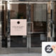 Makeup Studio Window Cling - Blush Pink Black Script Font Your Logo Here Hair and/or Makeup Business with name and social media handle.