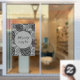 Visualización de ventana elegante y chic con espacio para agregar su logotipo o copia de negocio. Un gran letrero publicitario neutral para su negocio. Boho Grises Cálidos Mandalas Calcomanía de Ventana