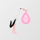 Este impresionante revestimiento de ventanas en forma de ventana presenta una imagen gráfica de una cigüeña blanca adorable con plumas de cola negra sosteniendo sobre un paquete de mantas rosa pálido. Hay un texto rosa en el paquete que dice "Niña bebé". Este diseño es perfecto para una ducha de bebé o para un anuncio de nacimiento.