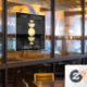 Un diseño inspirado en la mitad del siglo XX con formas geométricas doradas falsas crea un impacto visual en esta calcomanía personalizada para ventanas. Una excelente identidad para boutiques, tiendas de arte y manualidades, galerías, salones, tiendas emergentes y más. Arte y diseño © Estudio de Diseño 1201AM | www.1201am.com