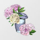 Ilustración de un cubo de palomitas de maíz lleno de peonías rosadas y blancas.