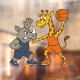 Vinilos Para Cristales Cartoon giraffe & rhino playing basketball