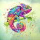 Chameleon Paint Stains Watercolor Style de arte bizarro surrealista. Ilustracion del logotipo vectorial original Copyright BluedarkArt.