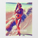 Modelo de chica de playa de Bikini parado en el borde del agua con cola de caballo a personalizar con tu propio saludo, nombre, mensaje, etc