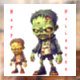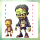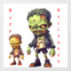Padre e hijo zombies están en esta ventana aferrándose a Halloween con huesos saliendo de sus rostros