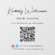 Vinilo personalizado chic para ventana de negocio con el nombre en una elegante letra de firma y tipo de negocio debajo en tipografía moderna simple. Ingrese la dirección URL de su sitio web para crear un código QR para que los clientes y clientes escaneen y obtengan una lista de sus productos, servicios, horarios, etc. Agregue sus identificadores de usuario de instagram y facebook para que los clientes lo sigan en las redes sociales.