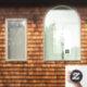 Horas modernas de funcionamiento Señal de ventosa de ventana clara para su negocio. Cargue su logotipo y código QR para que los clientes lo escaneen para obtener una lista de sus productos, servicios, precios u otra información. Agregue el nombre de su empresa, horas de funcionamiento u otro texto en tipografía blanca simple.