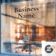 Una calcomanía de ventana de marca de negocio negro y una calcomanía de ventana que presenta el nombre de tu negocio, eslogan o frase de efecto, número de teléfono, sitio web, código QR personalizado y iconos personalizados de redes sociales. Una calcomanía personalizada para vitrina perfecta para escaparates y vitrinas. Perfecto para un propietario de tienda que desee decorar su ventana con el nombre y la marca de su negocio.