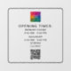 Horas de apertura de negocio personalizadas Abierto Cerrado Sube tu propio logotipo de empresa Código QR escaneable Aquí Agregar texto Moderno Elegante Simple Minimalista Profesional Número de teléfono Plantilla simple Oficina y escuela / Productos promocionales y suministros para pequeñas empresas / Señales y carteles / Calcomanías para ventanas y compra de calcomanías para ventanas Tienda en línea / Diseño opaco automático: Calcomanía para ventana con diseño cuadrado de base blanca.