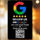 Una simple tarjeta de visita negra personalizada para ser de forma única una oportunidad inteligente para que pidas a tus clientes que dejen una reseña de cinco estrellas para tu tienda en Google. Añade tus datos, todo el estilo de texto, colores, impulsa tu presencia en línea en Google. Mejora tu reputación en línea y visibilidad en Google. Más reseñas significan más confianza y credibilidad para tu negocio.