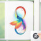 Hermoso tatuaje infinito con colibrí arco iris. Ave arcoiris.