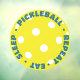 Imán redondo de pickleball de moda con la secuencia "EAT, SLEEP, PICKLEBALL, REPEAT" sobre el fondo de una bola de pickleball. Ideal para el coche, la casa o la oficina.