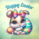 Un conejito personalizado adorable de Pascua con colores pastel, arcoiris y huevos vivos decorados.