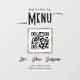Texto simple con opción de invitado de negocios. Código Qr para la comida o menú de servicio con conexión a sitios web o medios sociales. Suscripción de compartir