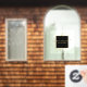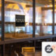 Luminosos puntos de confeti metálico dorado falso aparecen dispersos desde detrás de un marco negro y dorado falso que contiene el nombre de su empresa en esta calcomanía de ventana personalizada. Señalización creativa para boutiques, salones, galerías, espacios comerciales, cafeterías, tiendas emergentes y más. Arte y diseño original ©1201AM Design Studio | www.1201am.com