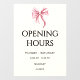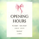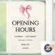 Simple and cute bow opening hours window cling for your small business. Illustrated and designed by Patricia Alvarez.