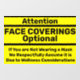 Cubiertas faciales opcionales de atención - Consideraciones de bienestar Pequeños negocios, hogar, etc. Señalización instructiva para personas libres