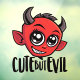 Vector personalizado ilustracion de un diablillo diabólico con ojos grandes con texto de Cute Pero Malvado. Palabras clave: diablo, infierno, lindo, demonio, malvado, satán, halloween, monstruo, cuernos, horror, adorable, dulce, diabólico, diabólico, diabólico, adorable, atractivo, encantador, delicioso, querido, querido, ganador, ganador, encantador, encantador, atractivo, bonito, adorno