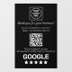 Encourage customers to share feedback with this custom black Google Reviews QR display. Perfect for shopfronts, cafés, salons, or offices, this design lets visitors instantly scan and leave a Google review with one tap. Add your business logo or custom text for a sleek, professional, and modern way to boost your online reputation.