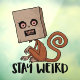 Raro, loco mono con una bolsa de papel sobre su cabeza con texto de Stay Weird. Palabras clave: mono, simio, primate, loco, demente, saco, papel, loco, raro, psicópata, animal, psicótico, loco, personalizado, vector, chaqueta, jadeo, bolso