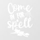 Esta divertida calcomanía para ventana de Halloween presenta la imagen de texto "Ven a lanzar un hechizo" con una bruja volando en su escoba. Perfecta para la temporada festiva.