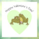 Este diseño presenta dos Ranas Cute enamoradas de las palabras "¡El día de San Valentín amapola!" dentro de una forma de corazón verde.