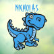 Nuestro bebé T Rex diseño en azul con espacio para un nombre, impreso en una ventana clavada! Message MineByDesign para diseños personalizados!