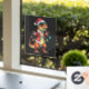Vinilos Para Cristales Dinosaurio envuelto con Navidades ilumina Santa Ha