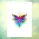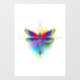 Luminosa, arco iris, libélula poligonal sobre fondo blanco, pintada con acuarela.