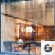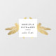 Un par elegante e inesperado de libélulas de oro falsas asoman desde detrás de una caja estilizada que lleva su nombre o el nombre de su negocio en esta calcomanía personalizada para ventanas. Una hermosa identidad para salones, spas, tiendas de belleza, boutiques de moda, artículos de lujo y más. Arte y diseño © Estudio de Diseño 1201AM | www.1201am.com