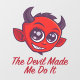 Vector personalizado ilustracion de un diablillo diabólico adorable con ojos grandes con el texto El diablo me hizo hacerlo. Palabras clave: diablo, infierno, lindo, demonio, malvado, satán, halloween, monstruo, cuernos, horror, adorable, dulce, diabólico, diabólico, diabólico, adorable, atractivo, encantador, delicioso, querido, querido, ganador, ganador, encantador, encantador, atractivo, bonito, adorno