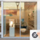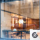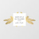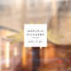 Un par elegante e inesperado de libélulas de oro falso asoman desde detrás de una caja estilizada que lleva su nombre o el nombre de su negocio en este decal personalizado para ventanas. Una hermosa identidad para salones, spas, tiendas de belleza, boutiques de moda, artículos de lujo y más. Arte y diseño © 1201AM Estudio de Diseño | www.1201am.com