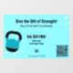 Energetic Gym Christmas Gift Certificate Promotion Window Cling is part of the "Electric Blue Fitness Business Cards & Marketing" collection. It is designed for a seasonal gift certificate promotion in a gym or fitness studio. The electric-blue, white and black accent branded window advertisement with a kettlebell symbol and star confetti has a billboard like effect. Clear font for the motto, offer and promise with indication where to get it and an expiration date and the possibility to scan and purchase online or get further information. Customize logo, QR code and text.