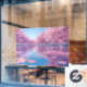 This high-resolution image captures a moment of serene spring beauty, showcasing an avenue of cherry blossom trees in full, vibrant pink bloom. The scene features a still body of water, possibly a pond or reflecting pool, its surface scattered with delicate floating petals and mirroring the saturated colors of the sky and the trees. The soft focus in the background draws the eye to the brilliant clarity of the foreground, highlighting the gentle ripples and the striking contrast between the deep, clear blue water and the ethereal pink foliage. This composition evokes feelings of tranquility, renewal, and the fleeting nature of beauty.