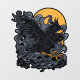 Ilustracion gráfico de un espeluznante cuervo negro con la luna detrás.