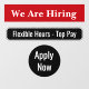 Firma de ventana de trabajo para anunciar la contratación de ofertas de empleo en un gran letrero fácil de leer y fácil de aplicar con nuestro signo de cierre de ventanas que puede usar para promocionar la contratación de personal adicional especialmente durante estos tiempos difíciles. Deja que la ventana de tu tienda te sirva para atraer nuevas contrataciones.