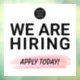 Estamos Contratando Aplicar Hoy Negocio Ventana Adhesiva con diseño de acento de pincelada de pintura rosa.