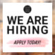 Estamos contratando el revestimiento Aplicar hoy ventana de negocios con diseño de acento de pincel rosa.