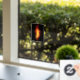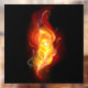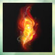 Una brillante pluma de pavo real hecha de fuego y llama sobre fondo negro.