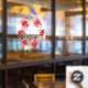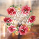 En esta ventana se muestra el guión blanco de Happy Holidays sobre flores rojas y vegetación. Seleccione CUALQUIER TAMAÑO y *cling en la parte delantera (interior) o trasera (exterior) de la ventana. (El tamaño mostrado es de 24" x 24", pero puede ser mayor o menor.)